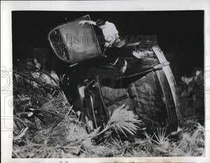 1947 Press Photo Car tossed 75 feet in Florida Hurricane