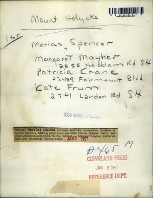 1957 Press Photo Students M. Spencer, M. Mayher, C. Frum & P. Crane plan party