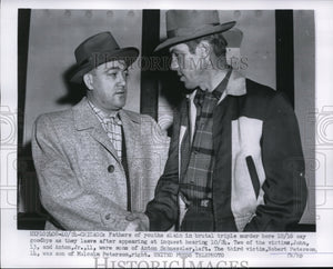 1955 Press Photo Anton Schessler and Robert Peterson,Fathers of Slain Boys, Meet