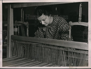 1937 Press Photo Eleanor Neel demonstrates the ancient art of weaving at the New