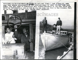 1956 Press Photo Ed Brown and Jack O'Shea prepare their boat for their voyage