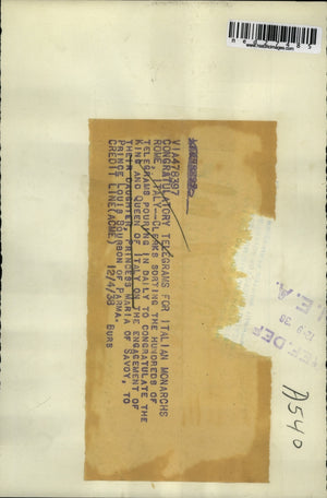 congratulating the King & Queen of Italy on the engagement of their daughter Princess Maria to Prince Louis Bourbon