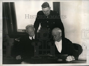 1938 Press Photo E.R. Frankish, C.T. Crawford & J.L. Flynn deciding prosecution