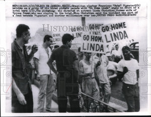 1958 Press Photo Brazilian playboy Francisco "Baby" Pignatari in front of picket