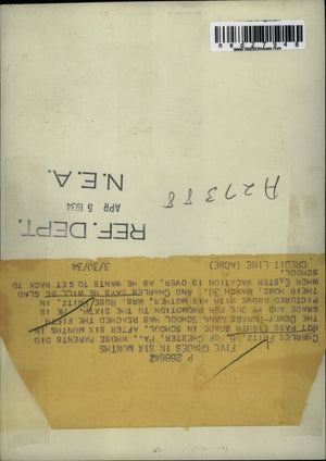 1934 Press Photo Charles Fritz, 6 of Chester Pa after 6 months in the Dewey-