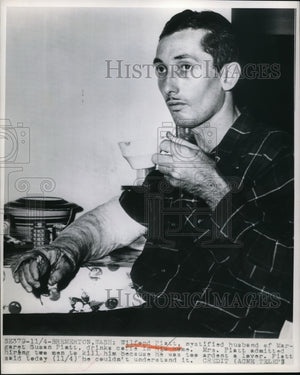 1949 Press Photo Bremerton Washington Wilford Platt mystified husband ofMargaret