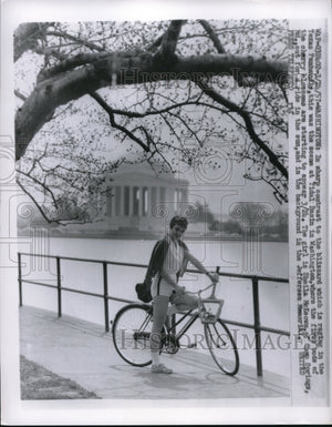 1957 Press Photo Sheila McKeown Amongst Spring Cherry Blossoms in Washington D.C