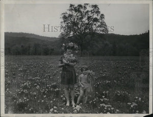 1934 Press Photo Barbara & Shirley Noble in fields of waiving California Poppies