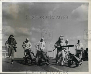 1941 Press Photo Aircraft Carrier Fire Squad of H.H.S. Furious During Drill