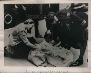 1940 Press Photo Policewoman Pauses To Admire Refugee Baby
