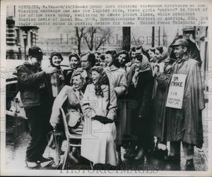 1952 Press Photo Charles Lewis Makes Jokes With Employees And Picketers