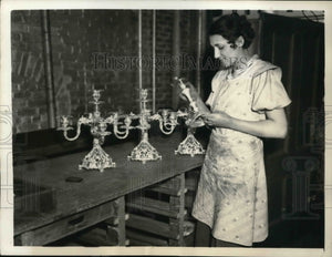 1935 Press Photo Irene Blanc Of Reed And Barton Silver Plant With Candle Holder