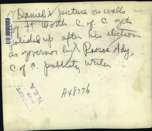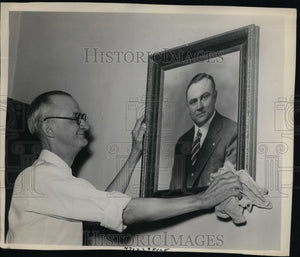 1938 Press Photo O'Daniel's picture on wall gets polished by Roscoe Ady
