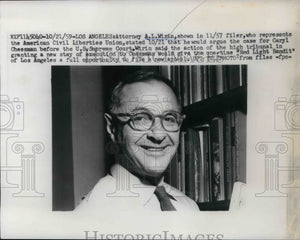 1959 Press Photo A.L. Wirin, representative of American Civil Liberties Union
