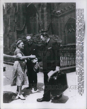 1957 Press Photo Herman Sidener talks to parishioner after closing church