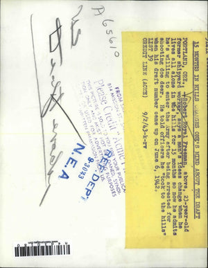1943 Press Photo Robert Freeman Avoids Draft By Living in Hills For 15 Months