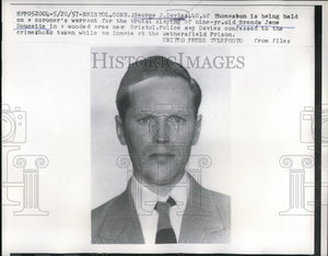 1957 Press Photo George J. Davies held on warrant for death of B.J. Doucette