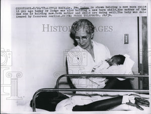 1957 Press Photo Dr. Eva Dodge holding baby delivered by Cesarean section
