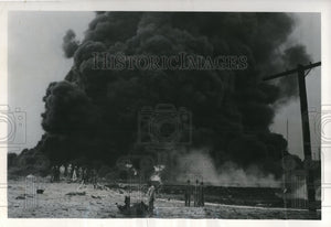 1950 Press Photo Smoke from a fire caused by crude oil tankers.