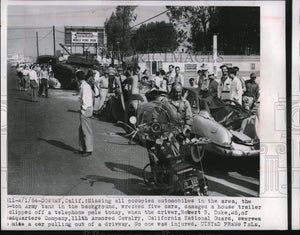 1954 Press Photo Tank Driver Robert B. Duke Causes Damage in Neighborhood