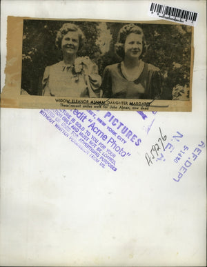 1940 Press Photo Widow Eleanor Alman and daughter Margaret