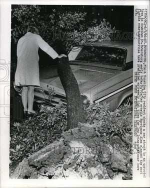 1966 Press Photo St Petersburg FLa resident checks a car struck by uprooted