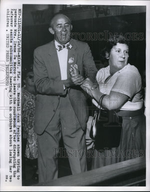 1955 Press Photo Jack Peoples Trying To Persuade Mrs. Irene De Marco