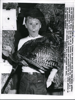 1957 Press Photo Detroit Mike Doelle hopes his dead eye will win this gobbler