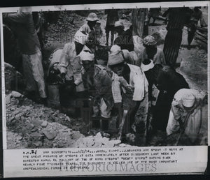 1954 Press Photo Laborers working at the great pyramid of Cheops at Giza