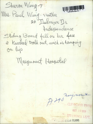 1959 Press Photo Sharon Wing and Mrs Paul WIng, Motherat Marymount Hospital