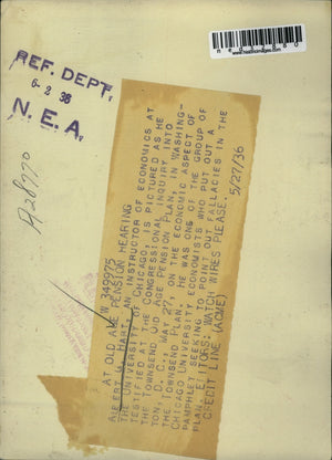 as he testified at Congressional Inquiry into the Townsend Old Age Pension Plan on econmonc aspect of plan