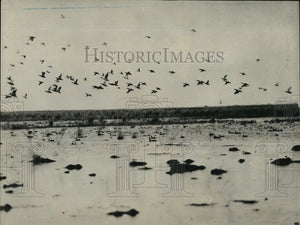 1937 Press Photo Flock Of Ducks Blue Winged Teal Thrill Hunters