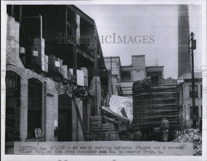 1955 Press Photo An early morning tornado ripped out a second floor wall at the