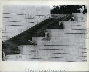 1963 Press Photo People cooling off in Paris by relaxing on giant stairway