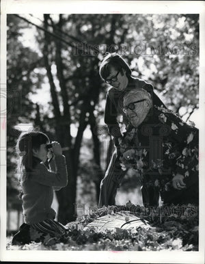 Undated Press Photo Children take pictures with Grandpa during their fall visit