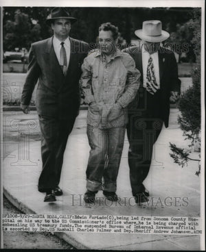 1951 Press Photo Edwin Furtado being led to US Commissioner's office