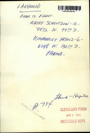 1964 Press Photo Kathy Scheutzow and Kimberley Franz of Lakewood - ned34292