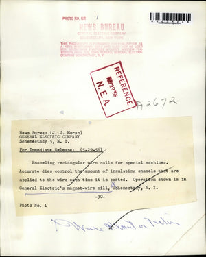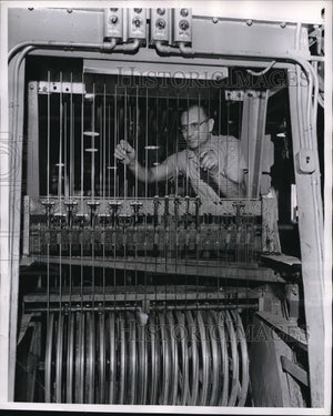 1956 Press Photo Operation shown in General Electric's magnet-wire mill