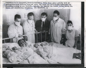 1959 Press Photo Marie Houra poses proudly with her quadruplets