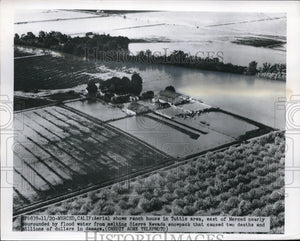 1950 Press Photo Flood Water covered the Tuttle Area at Merced California