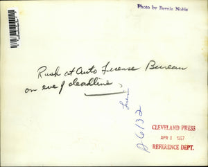 1957 Press Photo Rush of Auto Licences Bureau on Eve of Deadline
