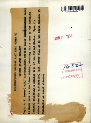 1934 Press Photo Capt. A. R. Dewar British Naval Officer On Liner Malolo