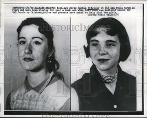 1957 Press Photo Regina Ridgeway and Paula Marrs have been missing