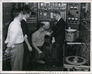 1957 Press Photo TV Engineers in Empire State Building get salk anti-polio