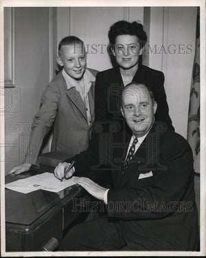 1948 Press Photo Herold Hunt with his wife and son Douglas at Chicago