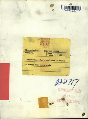 1959 Press Photo Painsville Fairground fire in which 10 horses were died