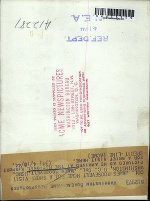 1944 Press Photo Col James Roosevelt USMC pictured as he arrived at the National