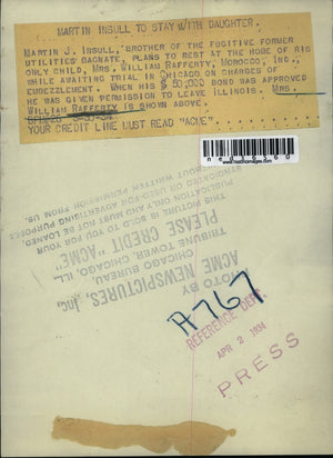 1934 Press Photo Martin J. Insull, brother of the fugitive Former Utilities