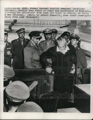 1948 Press Photo Rodolfo Graziana entering prisoners' dock for trial in Rome