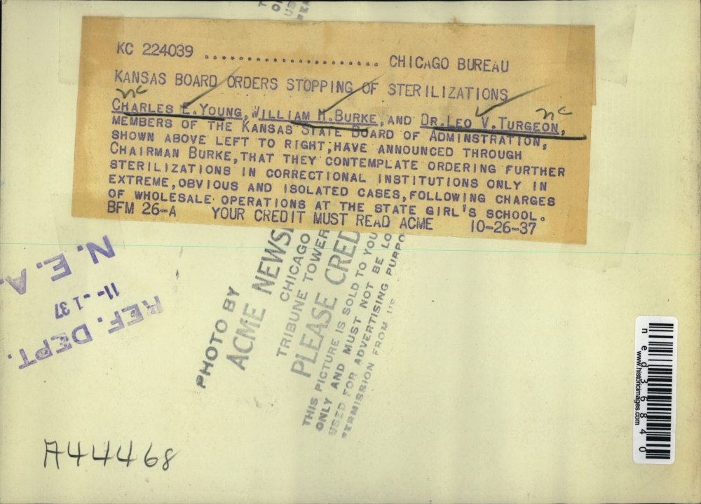 1937 Press Photo KANSAS BOARD ORDERS STOPPING OF STERILIZATION
